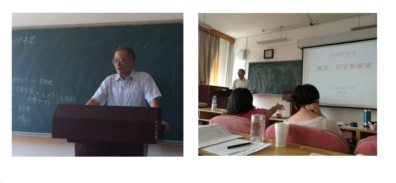 2016年8月20日至28日,应公司邀请,北京航空航天大学数学与系统科学公司陆启韶教授为bg大游集团官方网站师生进行了为期一周的讲学。陆启韶教授此次讲学内容包括“常微分方程与动力系统”专业的授课和三场专题报告,其中三场报告分别为:“用数学研究癌症--从分子调控到组织行为的数学建模 ”、“生物神经系统的一些动力学、信息和智能问题”和“非线性科学 概况、历史和展望“。 在为期一周的讲学中,陆启韶教授渊博的学识、缜密的思维、严谨的态度、精湛的教学技艺深深感染着每一位,期间热烈的讨论和互动,不仅带给大家丰富的学科前沿领域知识,而且也激发着创新发展的灵感与思考。