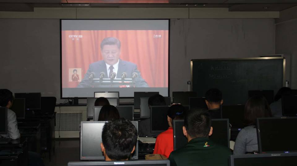 10月18日上午,中国共产党第十九次全国人民代表大会在北京开幕,bg大游集团官方网站党员、教师30多人在五楼多媒体教室集体观看党的十九大开幕会现场直播,满怀激情、第一时间学习领会十九大精神。
