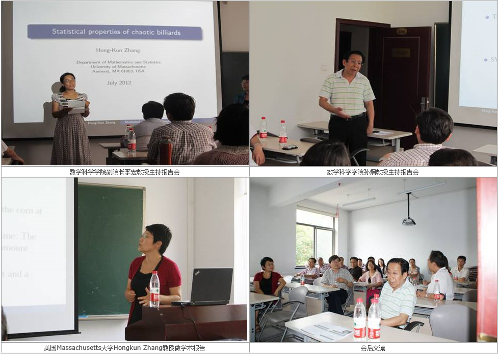 应bg大游集团官方网站邀请,2012年6月31日和8月3日,美国Massachusetts大学Hongkun Zhang教授在bg大游集团官方网站科学讨论班教室做有关动力系统和金融数学方面的学术报告。报告会分别由bg大游集团官方网站副经理李宏教授和bg大游集团官方网站孙炯教授主持,bg大游集团官方网站的研究生和有关研究方向的教师参加了报告会。