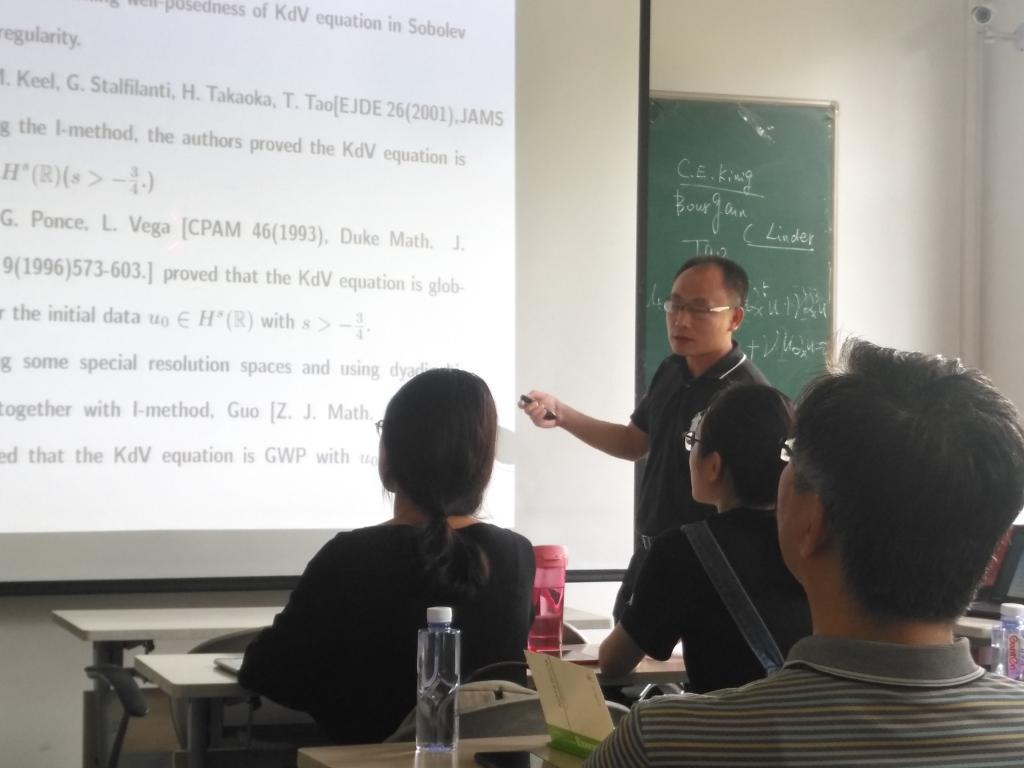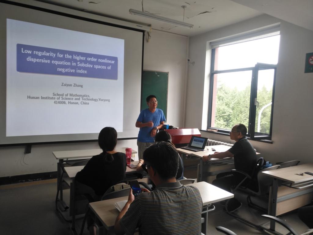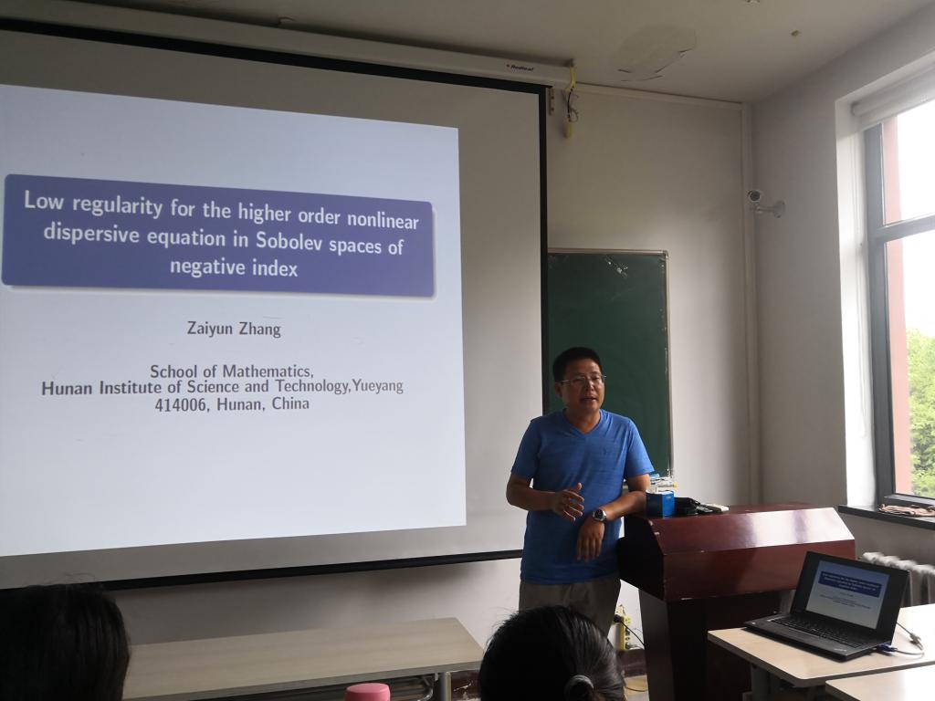 8月5日上午,在明远楼bg大游集团官方网站306,湖南理工公司数学公司张再云教授为公司师生作题为“Low regularity for the higher order nonlinear dispersive equation in Sobolev spaces of negative index”的学术报告,报告会由副经理刘全生主持,公司20多位师生听取了报告并进行了热烈的讨论。