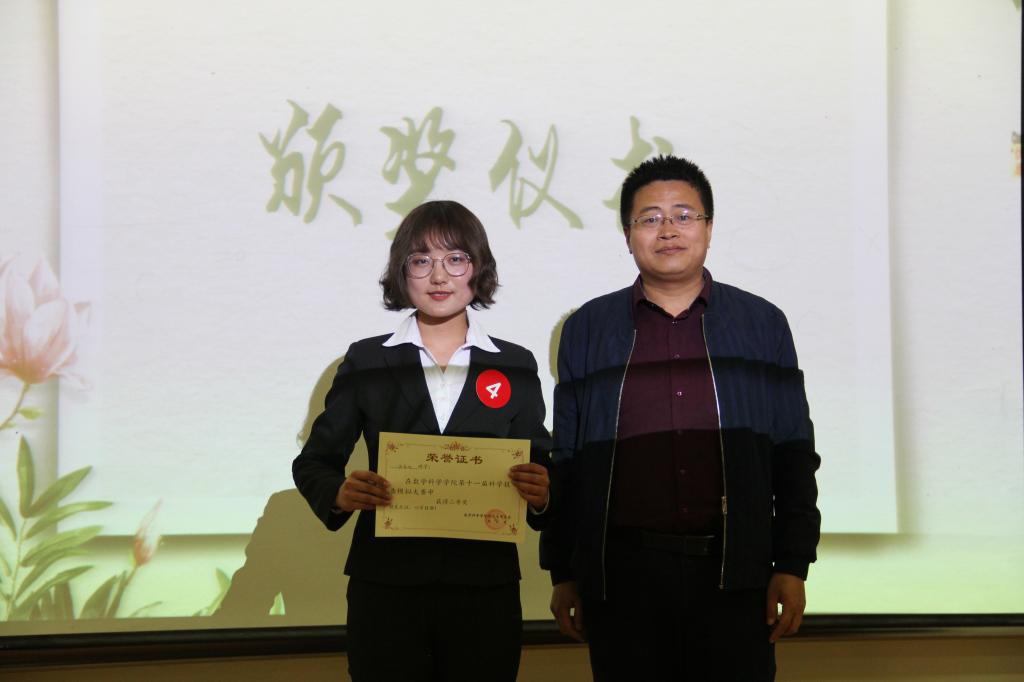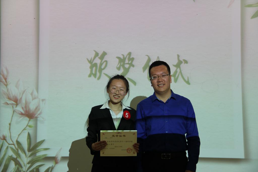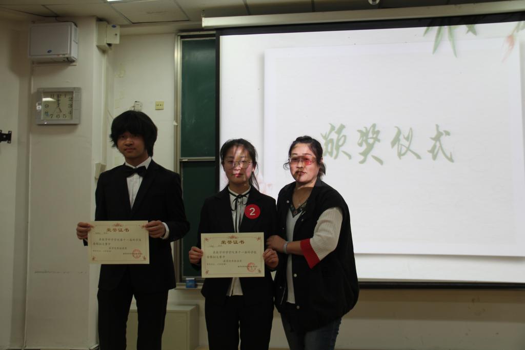 马靖宇获得一等奖,杜凯欣获得二等奖,庞婧获得三等奖,马晨菲 、侯博译获得优秀报告奖。