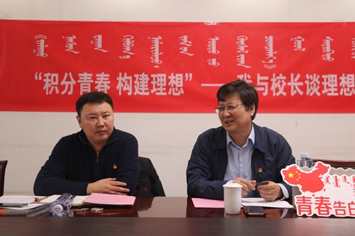 12月26日下午4:00,bg大游集团官方网站党委副书记、董事长陈国庆在北校区明远楼410会议室参加了bg大游集团官方网站2019级数理基础科学(数学基地)团支部“积分青春 构建理想”——董事长与我谈理想主题团日活动。公司团委书记阿古拉、班主任乌彩英、辅导员娜仁其其格及该支部31名同学参加活动。