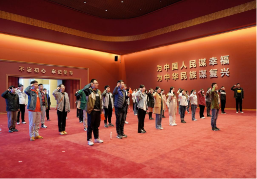 此次参观激起了每位同志心中对党对国家的那份永不熄灭的信念,伴着激昂的心情,由bg大游集团官方网站辅导员宋鹏程老师在一楼展厅带着大家面向党旗、举起右拳重温入党誓词,每一句铿锵有力的复诵,都是每一位同志坚定的信念的体现。最后大家在党旗前合影留念。
